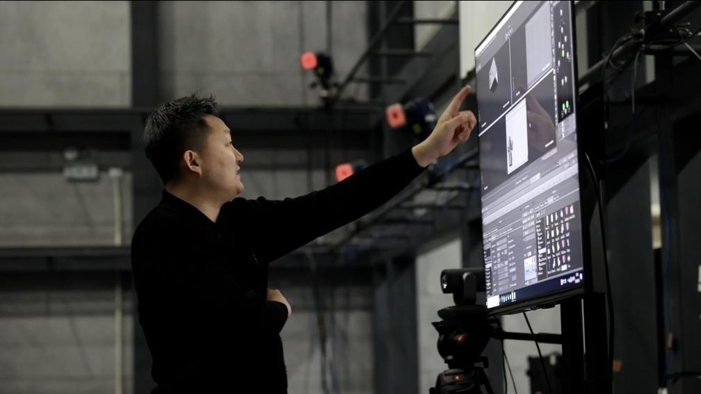 “這是動作數(shù)字孿生,利用光學動捕技術,棚內(nèi)多個專業(yè)攝像頭捕捉演員身上的特定標記,以毫秒級的速率計算出角色的運動軌跡,然后將數(shù)據(jù)傳送到電腦上,實現(xiàn)虛擬人物的動作。”國家動漫園公共技術服務平臺動捕棚的技術顧問崔盛輯向記者介紹道。