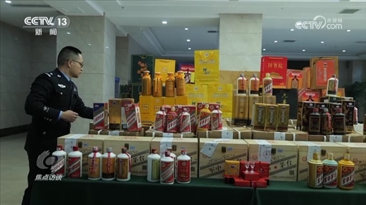 曾光:“我們在全國五個省市開展了相關全面收網(wǎng)工作,一共抓獲犯罪嫌疑人54名,搗毀生產(chǎn)灌裝窩點三個、銷售經(jīng)營場所三個、倉儲倉庫三個,現(xiàn)場查扣成品的知名假酒一共接近11600瓶。”