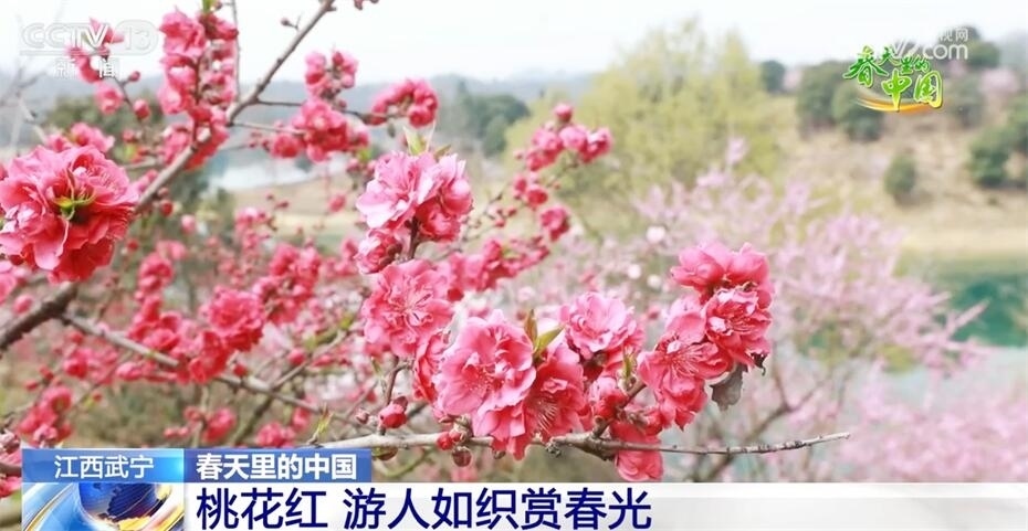春風送暖,草長鶯飛,讓我們去江西武寧縣的花源谷轉一轉。各種桃花爭先綻放,為清新的春日增添了濃濃的生機。遠看桃花,仿佛微微紅霞籠罩山頭;近看桃花,朵朵舒展自在、嬌嫩可愛。放眼望去,點點桃花如同滿目的粉紅色云霞,點綴著翠綠的草色。