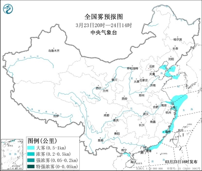 央視網(wǎng)消息:中央氣象臺(tái)3月23日18時(shí)繼續(xù)發(fā)布大霧黃色預(yù)警。預(yù)計(jì),23日夜間至24日白天,渤海北部海域、渤海海峽、黃海北部海域、黃海中部和南部的部分海域、東海西部海域、遼東半島沿岸海域、山東半島北部沿岸海域、成山頭附近海域、長(zhǎng)江口附近海域、杭州灣、舟山群島附近海域、浙閩沿岸海域、廣東東部沿岸海域、北部灣北部沿岸海域?qū)⒂心芤?jiàn)度不足1公里的大霧。此外,23日夜間至24日上午,江蘇南部、福建東部等地的部分地區(qū)有能見(jiàn)度不足1公里的大霧。