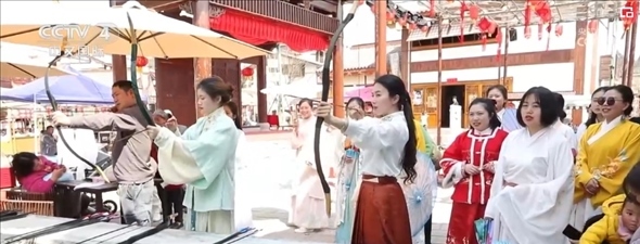 在四川遂寧市大英縣卓筒井鎮(zhèn),1.2萬畝桃花競相綻放,當?shù)嘏e行桃花美食春游季活動,引來各地游客“打卡”。在管咸市街區(qū),體驗蹴鞠、飛花令等宋代元素活動,品嘗長桌宴。卓筒井鎮(zhèn)擁有首批國家級非物質文化遺產“井鹽深鉆汲制技藝”,當?shù)貙⒈彼蔚闹汽}文化與發(fā)展二十多年的甜桃產業(yè)“穿越”組合,打造出遂寧鄉(xiāng)村振興精品示范村“宋井桃源”,讓村民吃上了“旅游飯”。