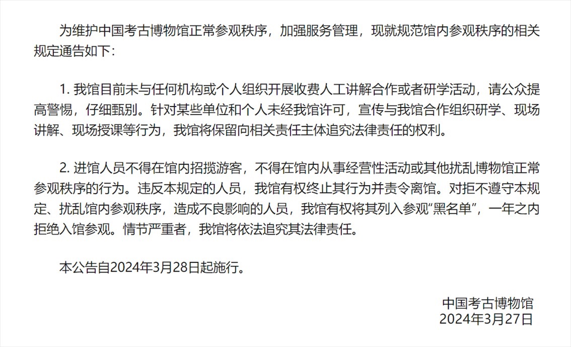 ·中國考古博物館發(fā)布公告,將規(guī)范館內(nèi)參觀秩序。
