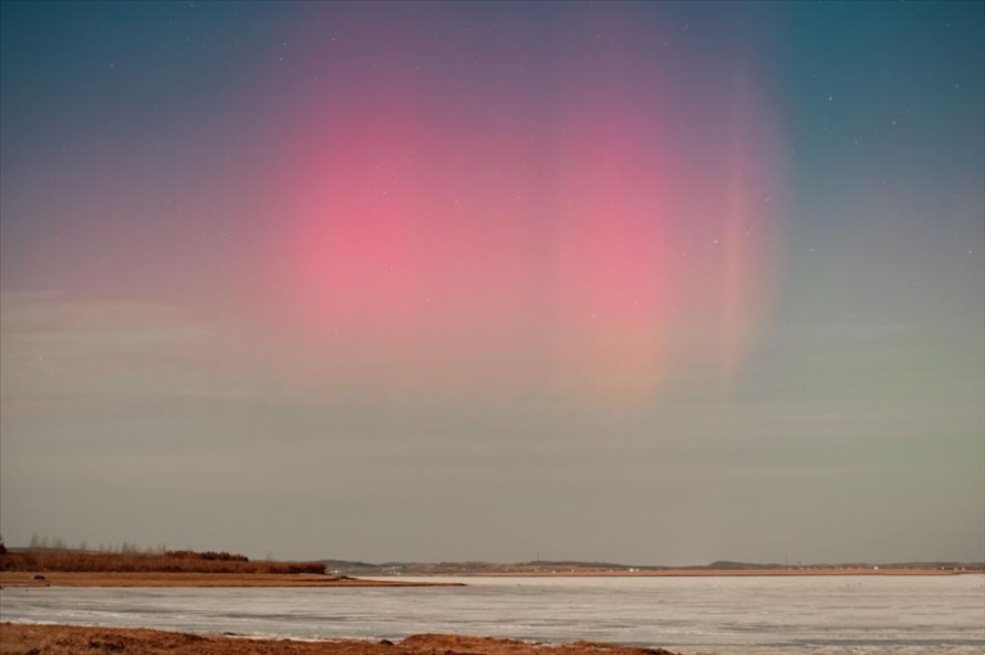 25日,受地磁暴活動影響,黑龍江省齊齊哈爾訥河市出現(xiàn)“腮紅”式極光,場景震撼。目前,地磁暴活動已開始逐漸減弱。