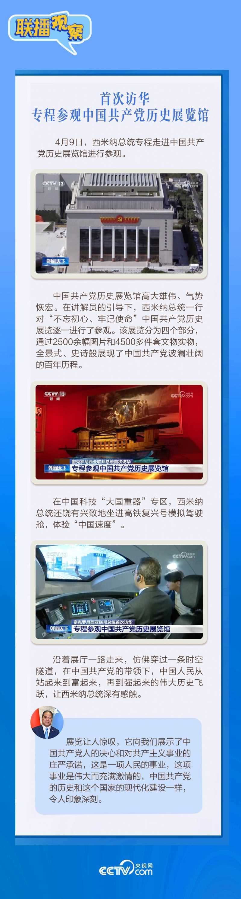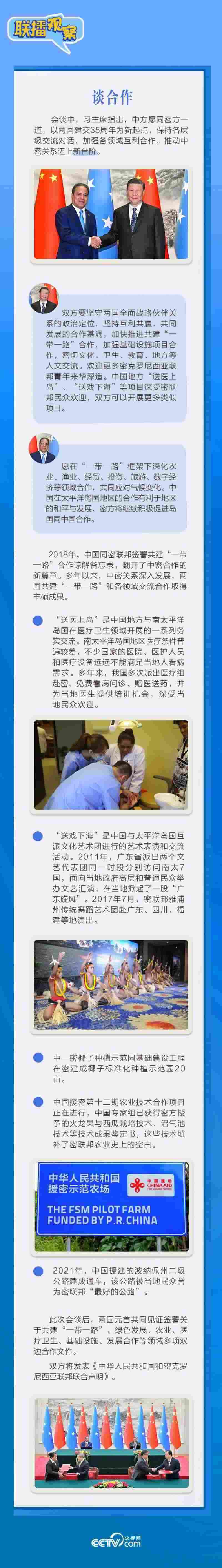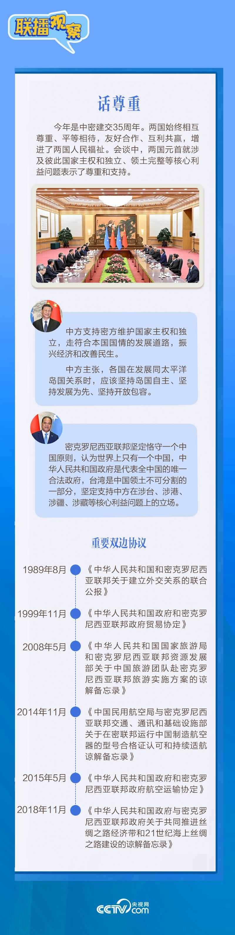 應(yīng)習(xí)近平主席邀請(qǐng),密克羅尼西亞聯(lián)邦總統(tǒng)韋斯利·西米納于4月5日至12日對(duì)中國(guó)進(jìn)行國(guó)事訪問(wèn)。4月9日下午,習(xí)近平主席在北京人民大會(huì)堂同西米納總統(tǒng)舉行會(huì)談,就雙邊關(guān)系發(fā)展及共同關(guān)心的問(wèn)題深入交換意見。雙方會(huì)談哪些細(xì)節(jié)值得關(guān)注?央視網(wǎng)《聯(lián)播觀察》帶您了解。