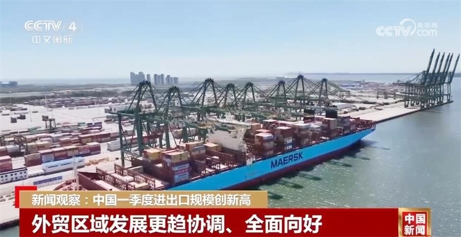 今年一季度,中國貨物貿(mào)易進(jìn)出口總值10.17萬億元,同比增長5%。其中,出口5.74萬億元,增長4.9%;進(jìn)口4.43萬億元,增長5%。進(jìn)出口增速創(chuàng)6個(gè)季度以來新高。