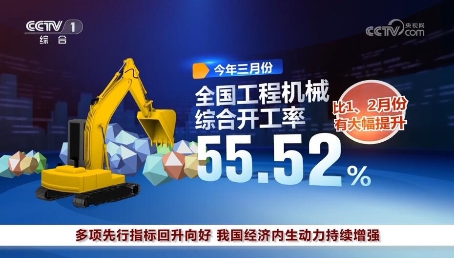 3月份,基礎設施建設及重大工程進度加快。挖掘機大數(shù)據顯示,全國工程機械綜合開工率達到55.52%,比1、2月份大幅提升。