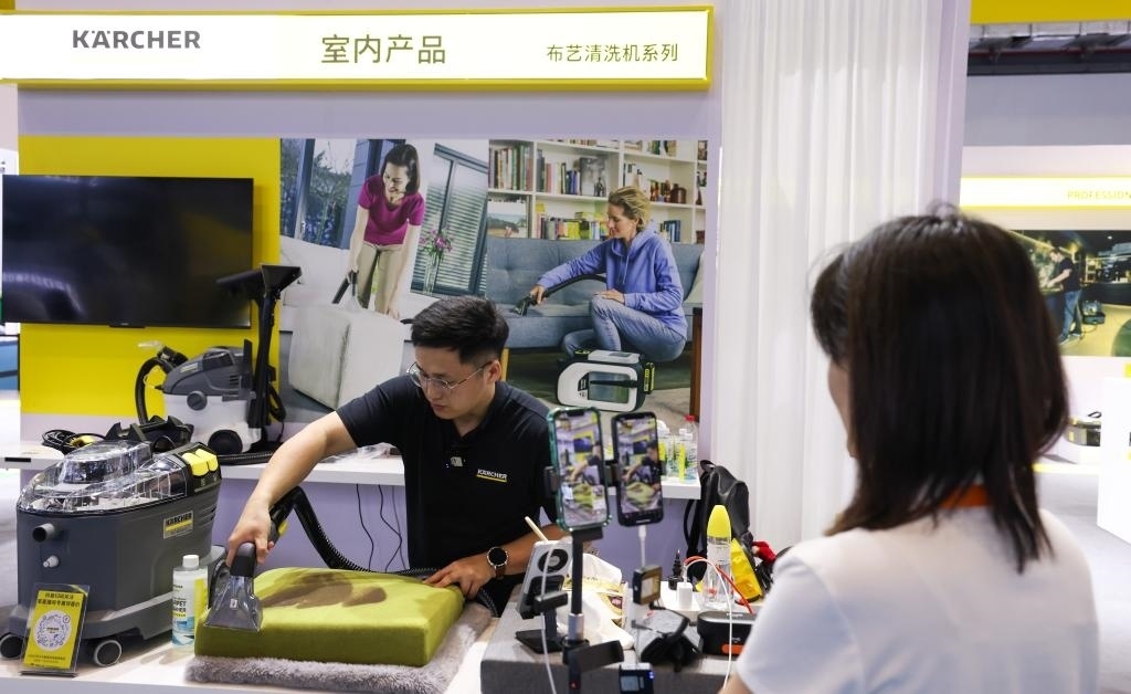 “友友們,現(xiàn)在進(jìn)入‘云’逛消博會(huì)時(shí)間,大家可以通過直播試擦,感受這款鏡面清潔機(jī)的功能。”一邊在展臺(tái)發(fā)布新品,一邊引導(dǎo)消費(fèi)者進(jìn)入直播間購買,卡赫現(xiàn)場工作人員陳女士忙得不亦樂乎。據(jù)她介紹,這是公司第一次在消博會(huì)上使用直播帶貨形式,“效果不錯(cuò),剛剛就有不少粉絲下單”。