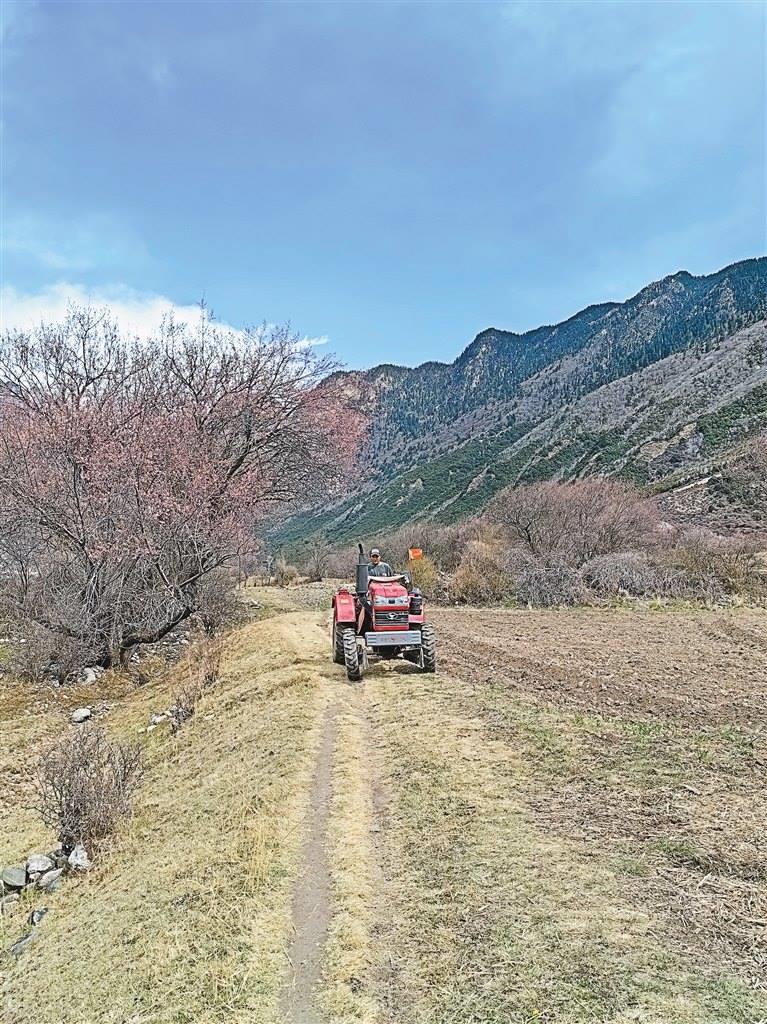 一輛紅色的旋耕機(jī)在田地旁停下來(lái),曲美仁增邊換犁頭,邊感嘆著科技帶來(lái)的便捷:“以前耕地全靠牲畜,費(fèi)時(shí)耗力,現(xiàn)在開(kāi)著旋耕機(jī)就把地耕完了,聽(tīng)著這機(jī)器轟隆隆的聲音,我覺(jué)得格外開(kāi)心,好像在說(shuō)我們尼屋的春天特別美,我們的生活肯定也會(huì)更幸福!”