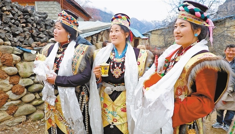 下尼屋的田壟上,35歲的扎西旺姆正在和相熟的村民一起干農(nóng)活,她是從波密縣八蓋鄉(xiāng)嫁到這里的,已經(jīng)在尼屋生活了7年?!斑@里和八蓋一樣,都以農(nóng)耕為主,氣候也差不多,人也很熱情,我和鄰居們經(jīng)常一起挖蟲草、采松茸、干農(nóng)活,感覺(jué)很幸福!”