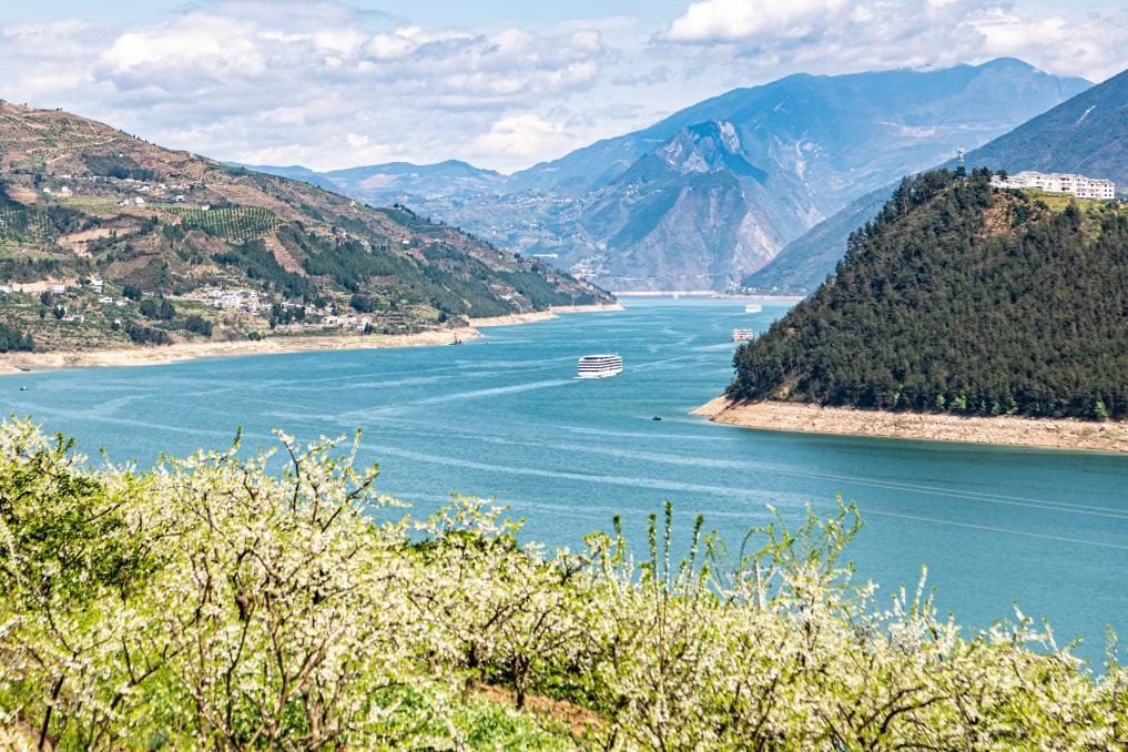 3月25日拍攝的重慶市巫山縣曲尺鄉(xiāng)長(zhǎng)江兩岸的萬畝李花。新華社記者 唐奕 攝