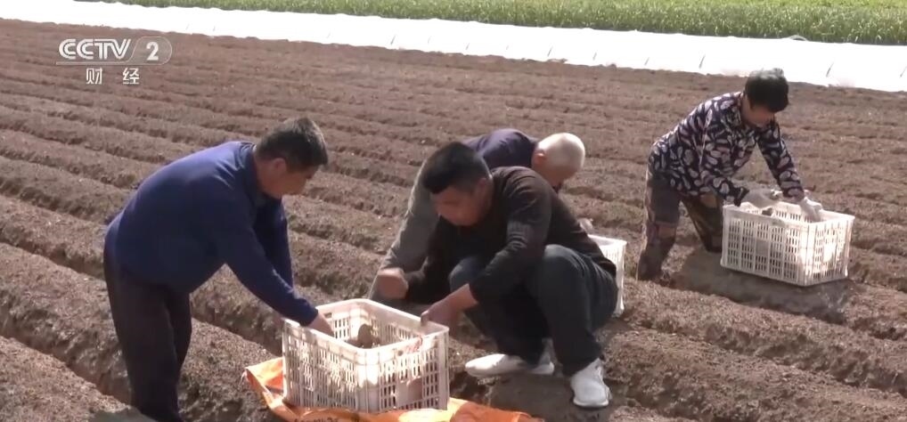 在山東省安丘市西南莊村,生姜種植戶正在田間忙著擺放姜種、施肥、蓋土。據介紹,按目前產地生姜按每斤5.6元核算,每畝種植效益可以達到2萬元左右。