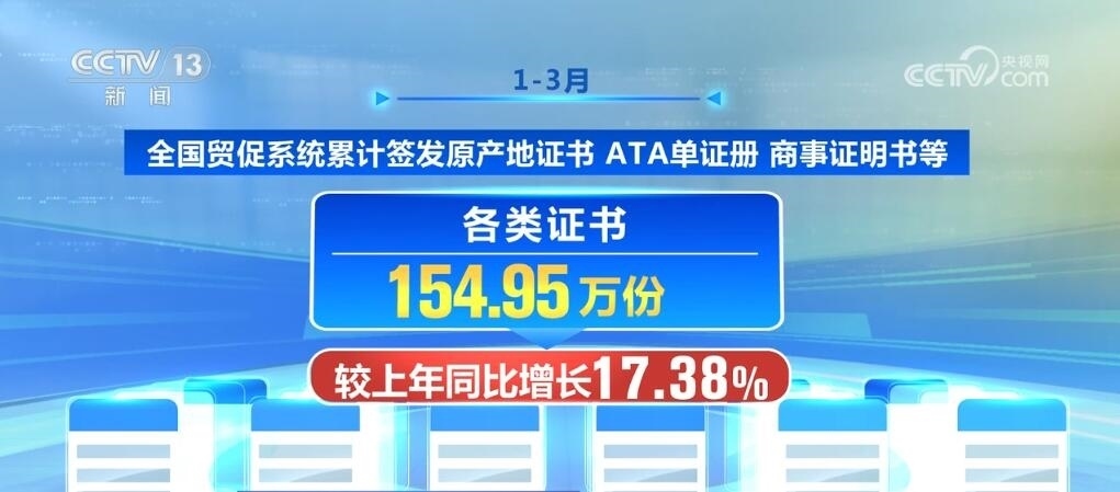 1—3月,全國(guó)貿(mào)促系統(tǒng)累計(jì)簽發(fā)原產(chǎn)地證書、ATA單證冊(cè)、商事證明書等各類證書154.95萬(wàn)份,較上年同比增長(zhǎng)17.38%。其中,全國(guó)貿(mào)促系統(tǒng)非優(yōu)惠原產(chǎn)地證書簽證金額共計(jì)849.31億美元,同比增長(zhǎng)2.47%;全國(guó)貿(mào)促系統(tǒng)優(yōu)惠原產(chǎn)地證書簽證金額共計(jì)161.21億美元,同比增長(zhǎng)4.73%。
