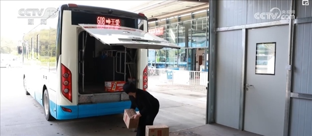 在專門定制的客貨郵公交車上,除了快遞包裹,還有一些團(tuán)購(gòu)的生活物資。司機(jī)介紹,因?yàn)榇謇锢先司佣?,到?zhèn)上買東西不方便,手機(jī)團(tuán)購(gòu)生活物資后,公交車就會(huì)一起帶到各村的集士驛站。