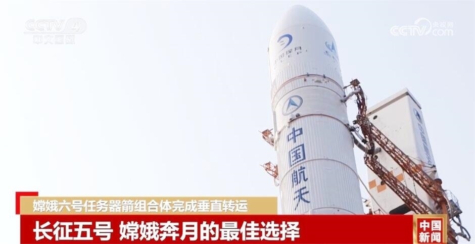 嫦娥六號任務(wù)器箭組合體完成垂直轉(zhuǎn)運