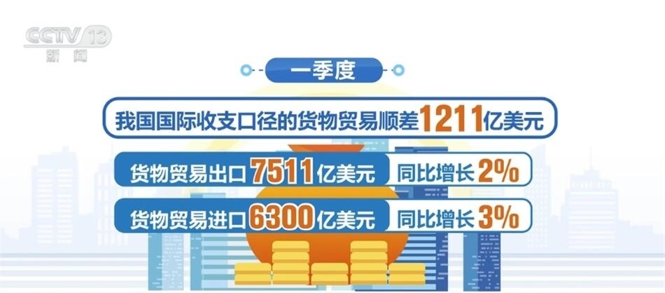 一季度,我國國際收支口徑的貨物貿(mào)易順差1211億美元,其中,貨物貿(mào)易出口7511億美元,同比增長2%;進口6300億美元,同比增長3%。一季度,我國對外股權(quán)性質(zhì)直接投資凈流出257億美元;來華股權(quán)性質(zhì)直接投資凈流入190億美元。我國國際收支保持基本平衡,貨物貿(mào)易保持順差,雙向跨境資金流動保持合理有序。