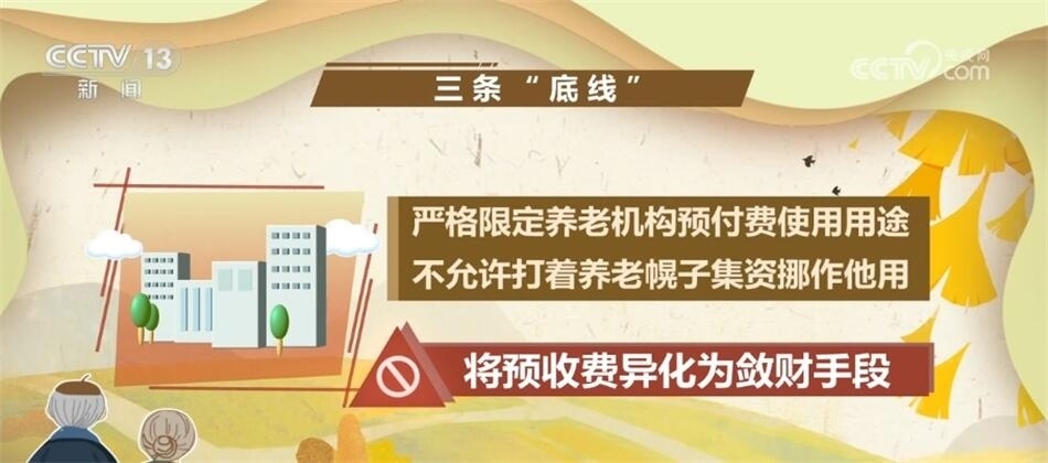 發(fā)布會上,民政部相關(guān)負責人介紹,《意見》還明確了三條安全“底線”:第一條是嚴禁養(yǎng)老機構(gòu)超過床位供給能力“一床多賣”;第二條是嚴格限定養(yǎng)老機構(gòu)預付費使用用途,不允許打著養(yǎng)老幌子集資挪作他用,將預收費異化為斂財手段;第三條是明確不得以承諾還本付息、給予其他投資回報等方式,誘導老年人及家屬交費,這是典型的非法集資行為。