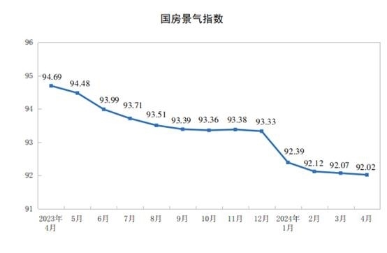 4月份,房地產(chǎn)開發(fā)景氣指數(shù)(簡(jiǎn)稱“國(guó)房景氣指數(shù)”)為92.02。