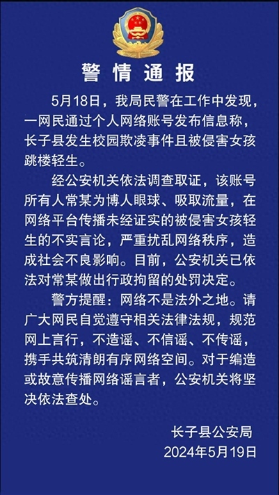 ·為流量造謠女生受欺凌輕生網(wǎng)民被行拘,警方通報(bào):相關(guān)涉事人員被處罰,造謠女生輕生者被行拘。