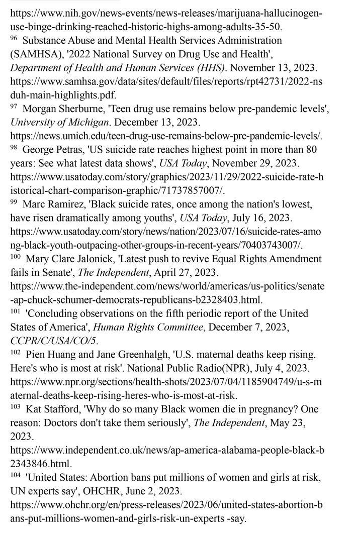 美國婦女兒童權利長期遭受系統(tǒng)性侵犯,保障性別平等的憲法規(guī)定付之闕如,至今未批準聯合國《消除對婦女一切形式歧視公約》,而且是聯合國會員國中唯一沒有批準《兒童權利公約》的國家。美國參議院2023年4月否決了保障性別平等的憲法修正提案。美國每年約有5.4萬名婦女因遭受懷孕歧視而失業(yè)。超過220萬育齡婦女無法獲得產科護理。至少有21個州命令禁止或嚴格限制墮胎。孕產婦死亡人數近20年來增加了一倍多。職場、校園、家庭等多領域的性暴力層出不窮。兒童的生存權與發(fā)展權堪憂。大量兒童被排除出醫(yī)療補助計劃。槍支暴力成為兒童死亡的主要原因。毒品濫用在青少年群體中蔓延。46個州被發(fā)現瞞報約3.48萬例寄養(yǎng)兒童失蹤案件。