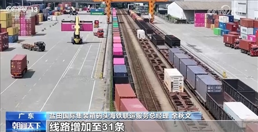 鹽田國(guó)際集裝箱碼頭海鐵聯(lián)運(yùn)服務(wù)總經(jīng)理余秋文介紹:“截至今年4月份,我們共開通了14個(gè)海鐵聯(lián)運(yùn)內(nèi)陸港,線路增加至31條,覆蓋了大灣區(qū)、華中、西南等重要的經(jīng)濟(jì)區(qū)域?!?/p>