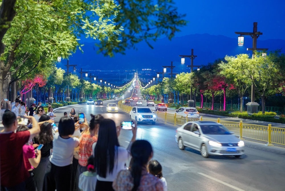 2024年5月21日,游客在升級改造后的運(yùn)城市“鹽湖006號燈桿”觀景臺(tái)拍照。