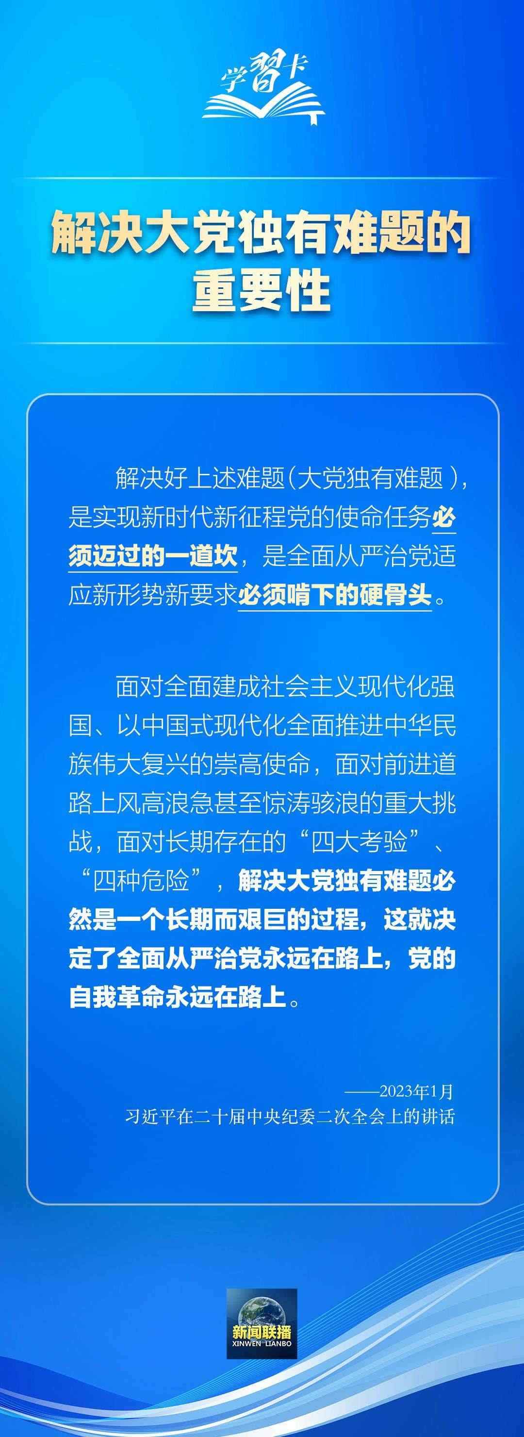 習近平總書記在不同場合多次強調全面從嚴治黨、黨的自我革命的重要性。解決好大黨獨有難題,是實現(xiàn)新時代新征程黨的使命任務必須邁過的一道坎,是全面從嚴治黨適應新形勢新要求必須啃下的硬骨頭。
