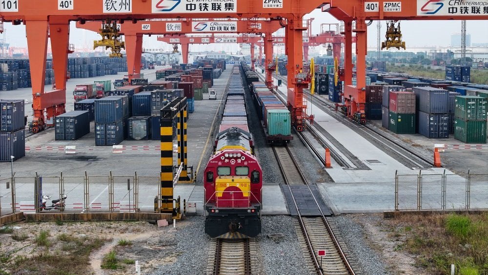 西部陸海新通道鐵海聯(lián)運(yùn)班列從欽州港東站駛出(2024年5月12日攝,無人機(jī)照片)。隨著中國(guó)-東盟開放平臺(tái)建設(shè)向縱深推進(jìn),西部陸海新通道正在成為釋放開放活力的強(qiáng)力新引擎,以物流為切入口,促進(jìn)資金、資源、人員、技術(shù)等生產(chǎn)要素深度融合。