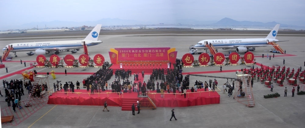 2006年,廈航作為新增廈門航點的唯一運營航空公司,執(zhí)行了廈門-臺北、廈門-高雄航線的包機(jī)任務(wù)。這是首航儀式現(xiàn)場。