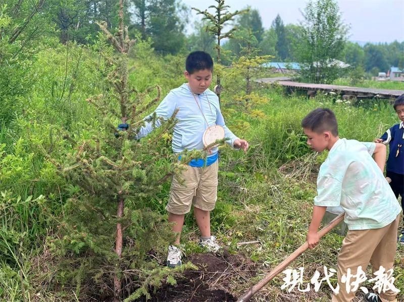 這樣的美麗風(fēng)景讓第一次來到大草原的周云昊很興奮?!拔覀儚漠?dāng)?shù)亓私獾?,這是一代又一代人努力的結(jié)果,讓我們也深切感受到生態(tài)保護的重要性?!毖袑W(xué)途中,周云昊和小伙伴們還專門在當(dāng)?shù)亓謭龇N下一棵樹。“希望它能健康長大,成為守護綠色草原的小衛(wèi)士?!?/p>