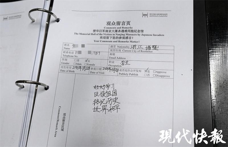 “好好學(xué)習(xí),回報祖國”“吾輩當(dāng)自強”“振興中華,責(zé)任在我們這一代”……暑假進入尾聲,侵華日軍南京大屠殺遇難同胞紀念館觀眾隊伍里,孩子們的身影依舊不少。在紀念館留言簿上,他們用稚嫩的筆跡留下一句句和平心聲。