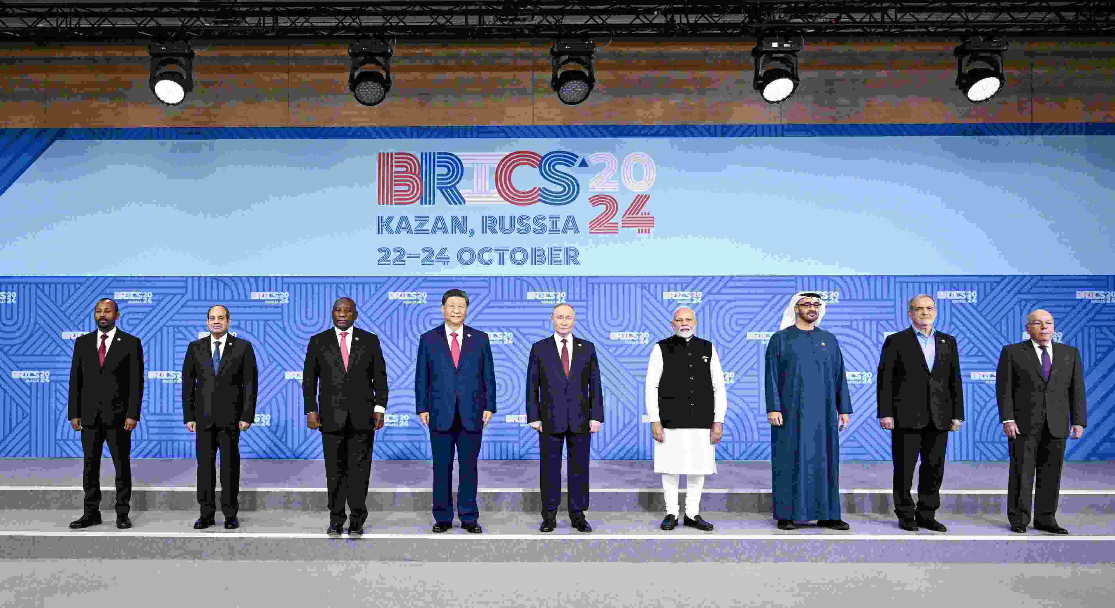 △當(dāng)?shù)貢r(shí)間2024年10月24日上午,國家主席習(xí)近平在喀山會(huì)展中心出席金磚成員國、嘉賓國領(lǐng)導(dǎo)人和國際組織負(fù)責(zé)人集體合影。