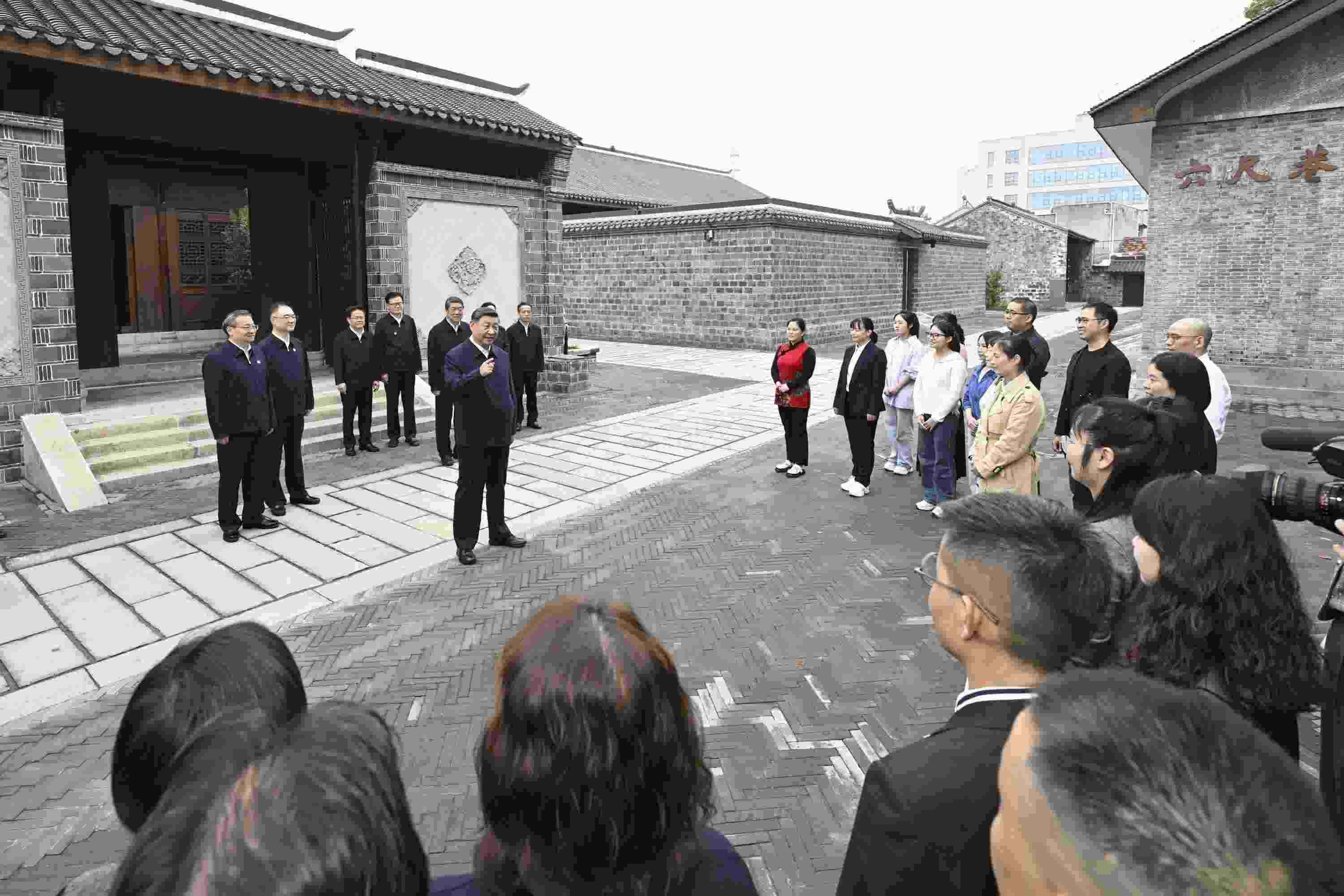 △2024年10月17日,習(xí)近平總書記在安徽省安慶桐城市六尺巷考察時(shí),同當(dāng)?shù)鼐用窈陀慰陀H切交流。