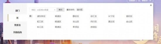 2點擊網(wǎng)頁右上方“切換部門,區(qū),管委”。
