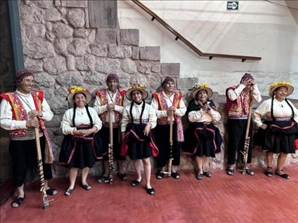 身著傳統(tǒng)服飾的秘魯藝人。本報記者 張朋輝 攝