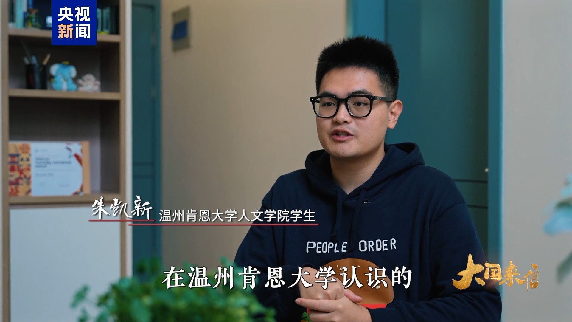 溫州肯恩大學(xué)人文學(xué)院學(xué)生 朱凱新:我也是非常非常期待每一位美國(guó)朋友來(lái)到我們中國(guó),來(lái)到我們真正的這塊土地上去看看我們到底是什么樣子的。我希望能夠讓中國(guó)和美國(guó)兩個(gè)國(guó)家能夠有更好的友誼。