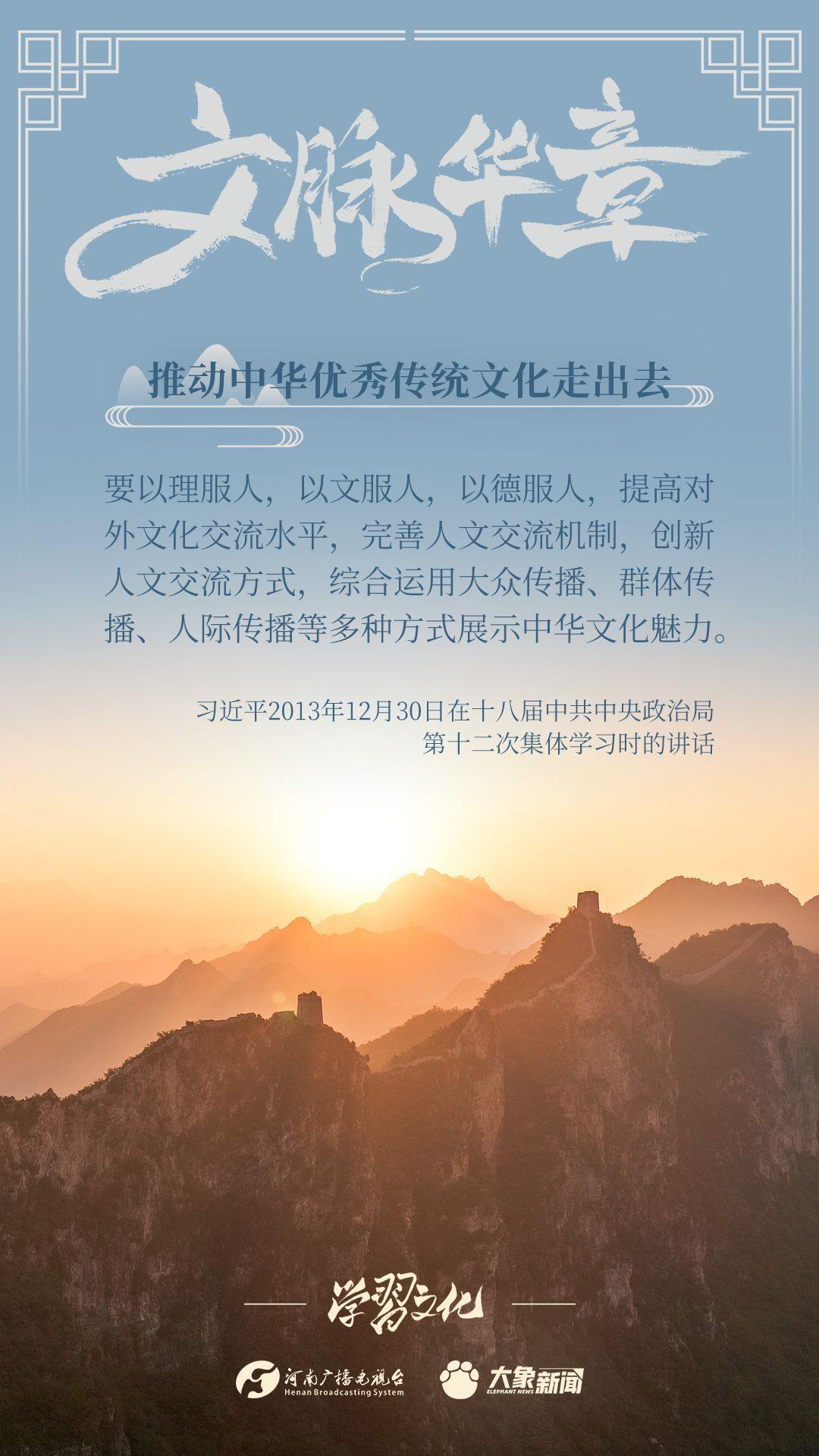 黨的十八大以來,習(xí)近平總書記高度重視中華優(yōu)秀傳統(tǒng)文化的傳承發(fā)展,突出強(qiáng)調(diào)推動中華優(yōu)秀傳統(tǒng)文化走出去,作出了一系列重要論述,大象新聞邀您一起學(xué)習(xí)。