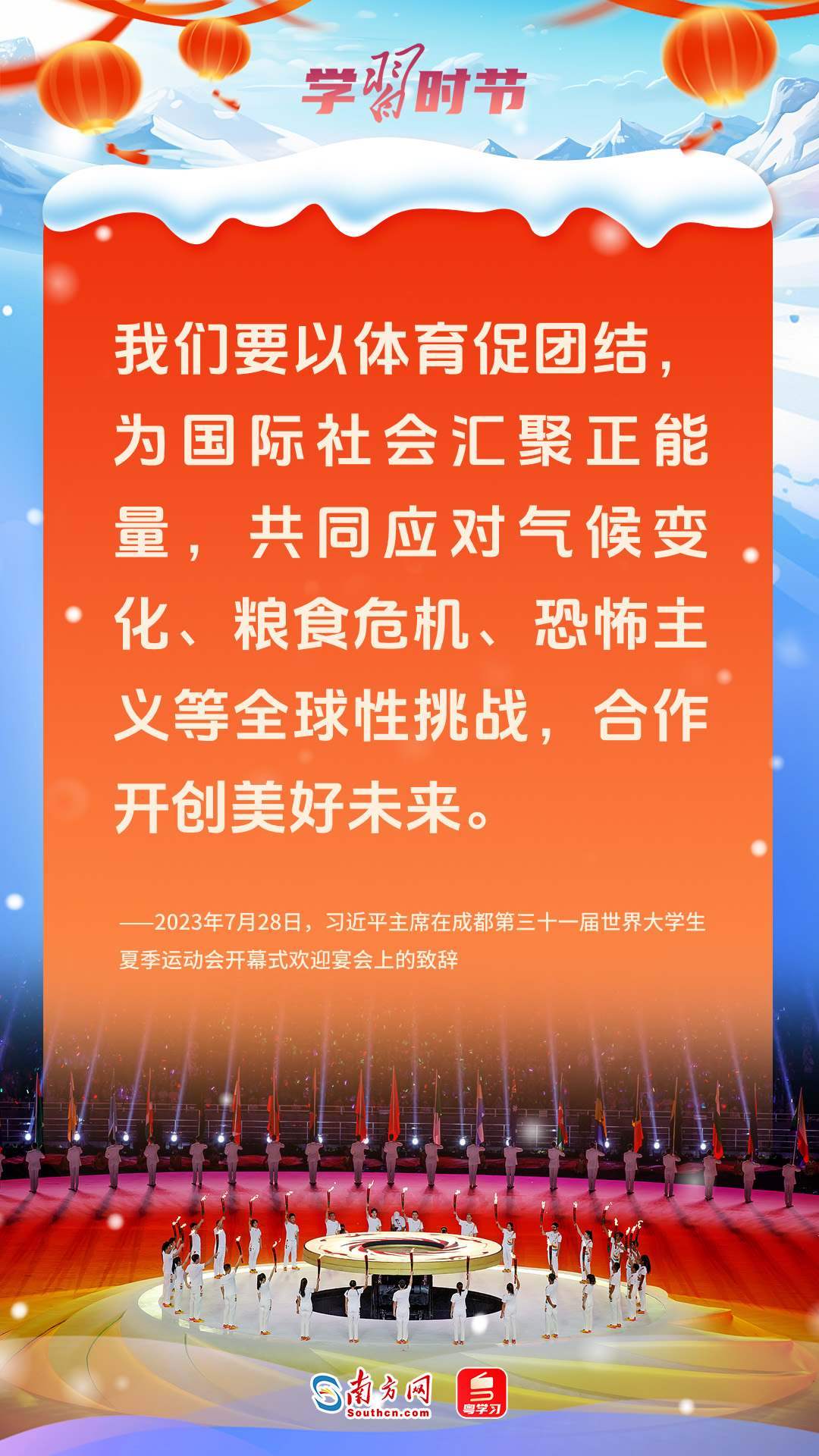 體育是增進人民友誼的紐帶,習近平總書記多次強調以體育促進團結與和平,推動國之交、民相親。這個元宵節(jié),讓我們一起重溫習近平總書記的深刻話語,以體育精神匯聚團結和平力量。
