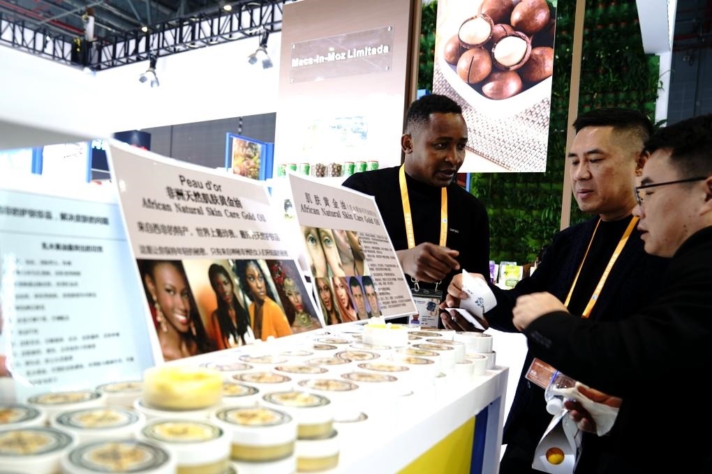 2024年11月7日,參展商在第七屆進(jìn)博會(huì)食品及農(nóng)產(chǎn)品展區(qū)的非洲產(chǎn)品專(zhuān)區(qū)介紹產(chǎn)品。新華社記者 張建松 攝