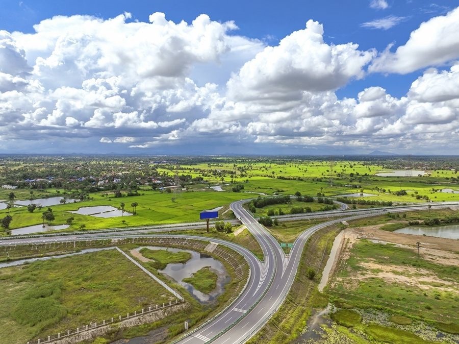 金港高速是柬埔寨第一條高速公路,是中柬共建“一帶一路”的標(biāo)志性工程。這是2024年9月25日在柬埔寨磅士卑省拍攝的金港高速(無(wú)人機(jī)照片)。新華社發(fā)(柬埔寨金港高速公路有限公司供圖)