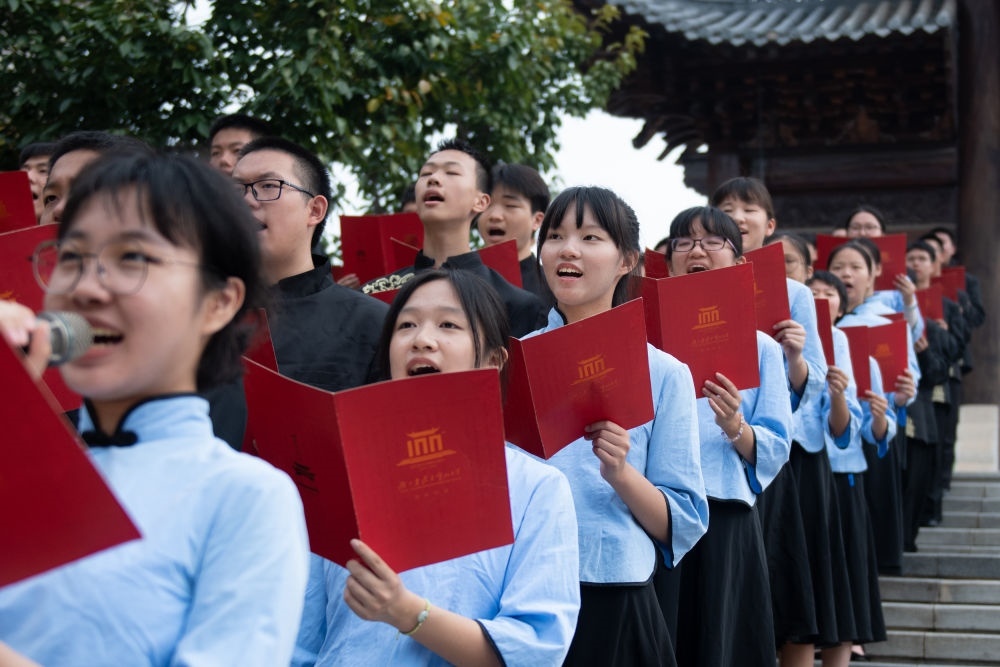 2023年9月4日,武漢市武昌區(qū)2023年秋季開學(xué)思政課在湖北省武昌實(shí)驗(yàn)中學(xué)開講,這是學(xué)生在誦讀《惟楚有材賦》。這堂思政課以“傳承武昌古城千年文脈,爭做守正創(chuàng)新時代新人”為主題,通過“實(shí)景體驗(yàn)+課堂展示”的形式,講述武昌古城1800年文脈的歷史與傳承,為該校學(xué)生帶來一場沉浸式課堂體驗(yàn)。