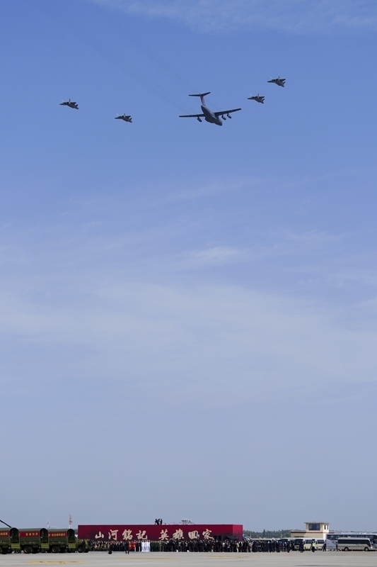 9月12日,第十二批在韓中國(guó)人民志愿軍烈士遺骸回國(guó)。這是為接運(yùn)烈士遺骸回國(guó)的運(yùn)-20專機(jī)伴飛護(hù)航的殲-20飛機(jī)。