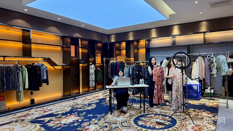 天門服裝電商直播帶貨(央廣網記者趙玲 攝)