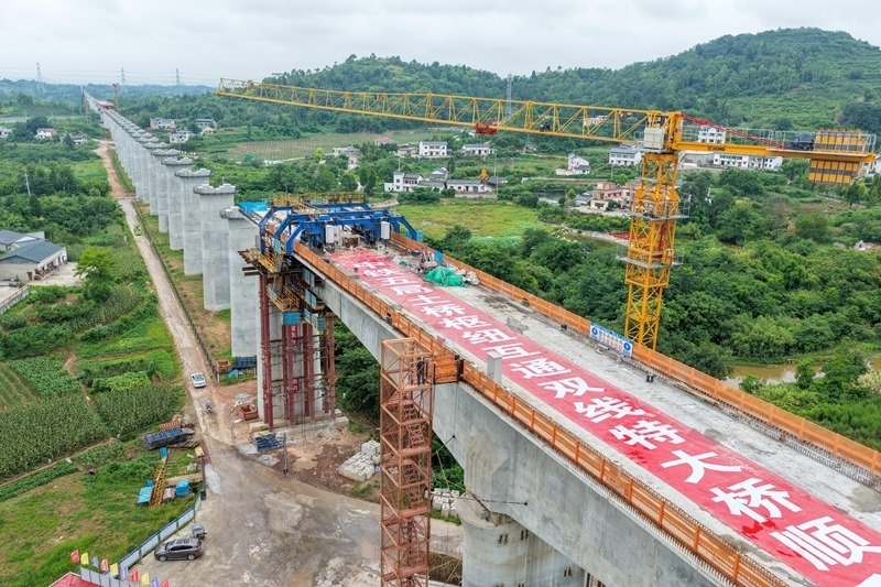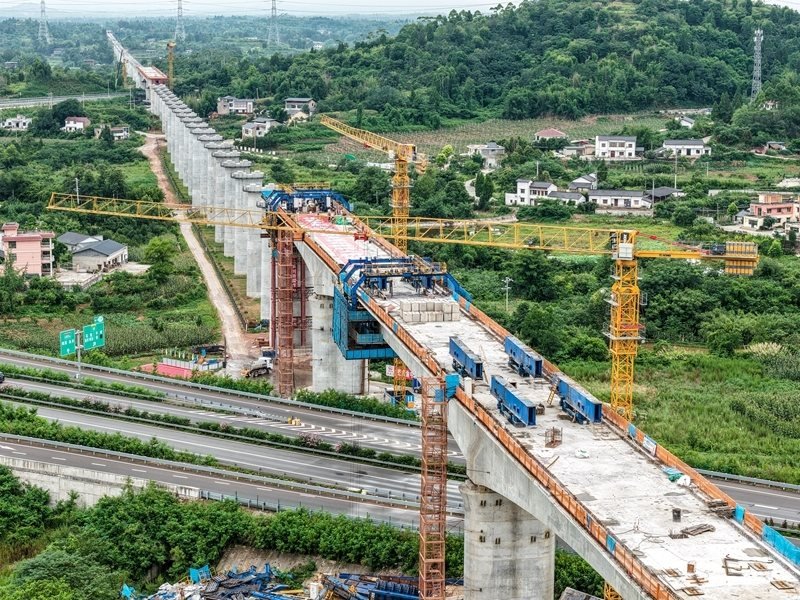 成渝中線高鐵重慶段最大跨度連續(xù)梁順利合龍