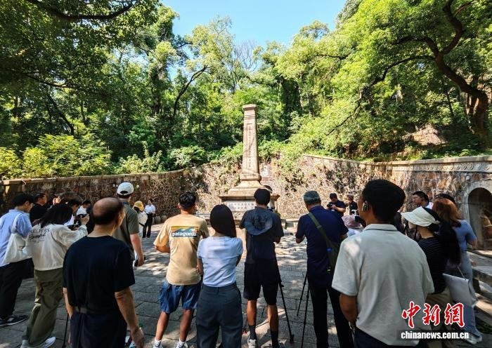 7月25日,媒體記者走訪長(zhǎng)沙會(huì)戰(zhàn)-岳麓山抗戰(zhàn)舊址群。中新社記者 鄧霞 攝