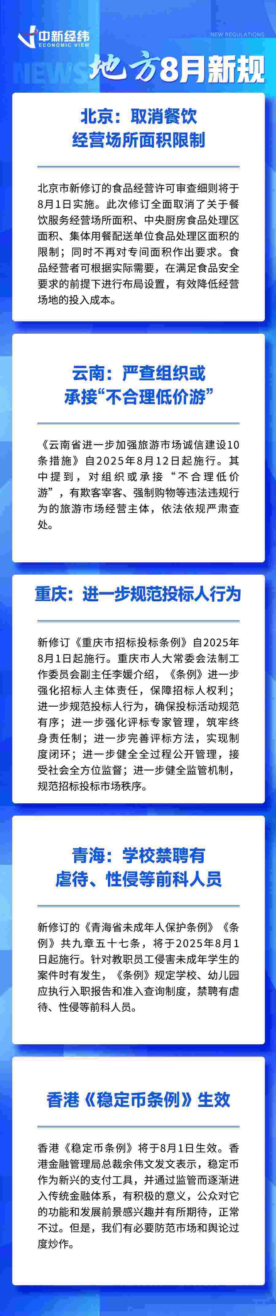 中新經(jīng)緯7月30日電 (熊思怡)現(xiàn)金買黃金超10萬(wàn)元需上報(bào)、新增2個(gè)職業(yè)病類別、北京取消餐飲經(jīng)營(yíng)場(chǎng)所面積限制……8月,這些新規(guī)事關(guān)你我,一起來(lái)看。