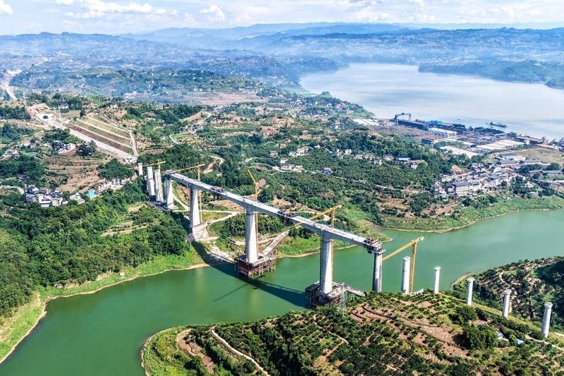 當(dāng)日,由中國鐵建大橋局承建的重慶至萬州高速鐵路(渝萬高鐵)渠溪河雙線特大橋順利合龍。渝萬高鐵渠溪河雙線特大橋位于重慶市涪陵區(qū)珍溪鎮(zhèn),橫跨長江支流渠溪河,全長約953米,是全線重難點工程。
