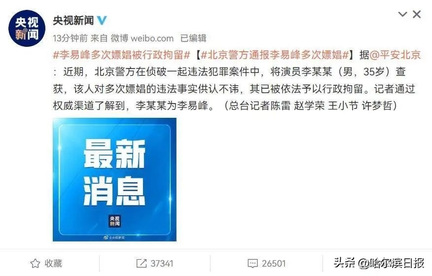 另據(jù)央視消息,確認(rèn)李某某為演員李易峰。