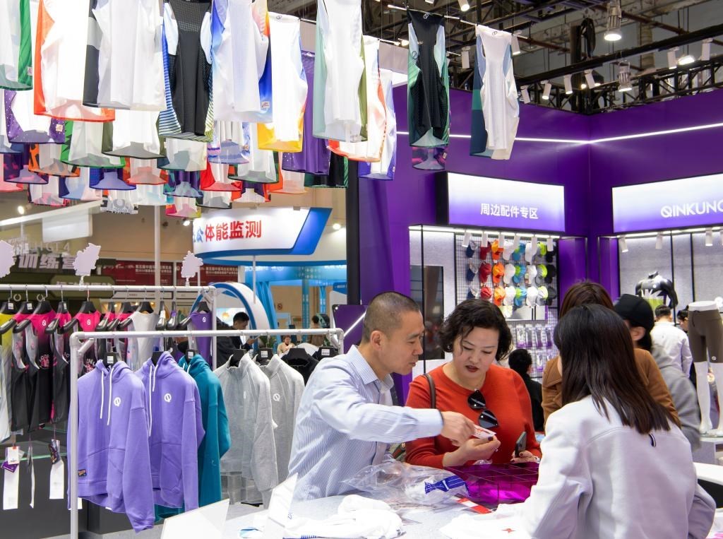 1月4日,觀眾在第五屆中國馬拉松博覽會現(xiàn)場挑選體育運動服裝。當(dāng)日,為期三天的第五屆中國馬拉松博覽會暨2024福建省路跑產(chǎn)業(yè)博覽會在廈門國際會展中心開幕。新華社記者 魏培全 攝