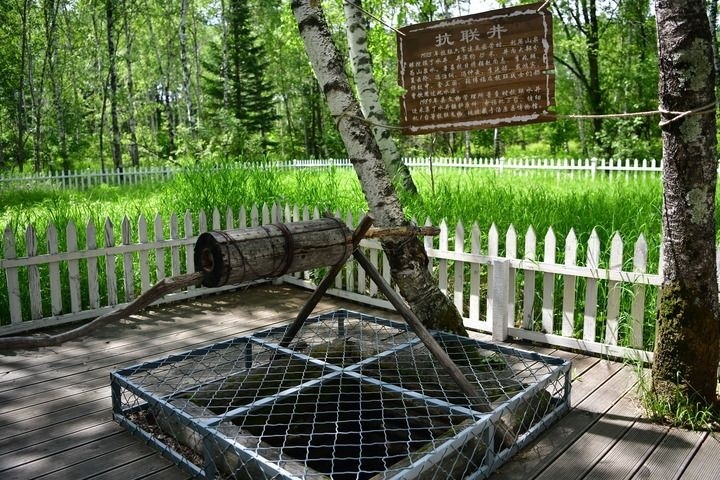 在湯原縣大亮子河國(guó)家森林公園深處,一座復(fù)原的密營(yíng)群落靜靜矗立。松木搭建的低矮房屋順著山勢(shì)鋪開(kāi),一口古樸的水井掩映在草叢中,屋后的戰(zhàn)壕蜿蜒而去,最后隱入密林,這里曾是東北抗聯(lián)第六軍的密營(yíng)遺址。