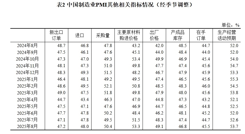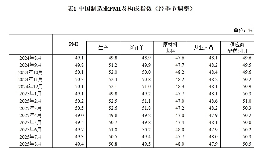 據(jù)國(guó)家統(tǒng)計(jì)局網(wǎng)站消息,國(guó)家統(tǒng)計(jì)局8月31日發(fā)布2025年8月中國(guó)采購經(jīng)理指數(shù)運(yùn)行情況。